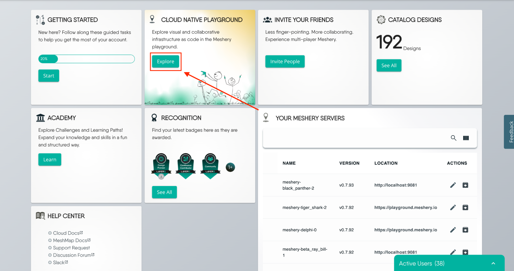In the Cloud Native Playground tile, click Explore to navigate to Kanvas.